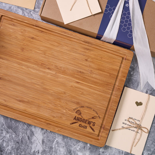 Bamboo Cutting Board Custom Fathers Day Grill StyleName engraved wedding gift board